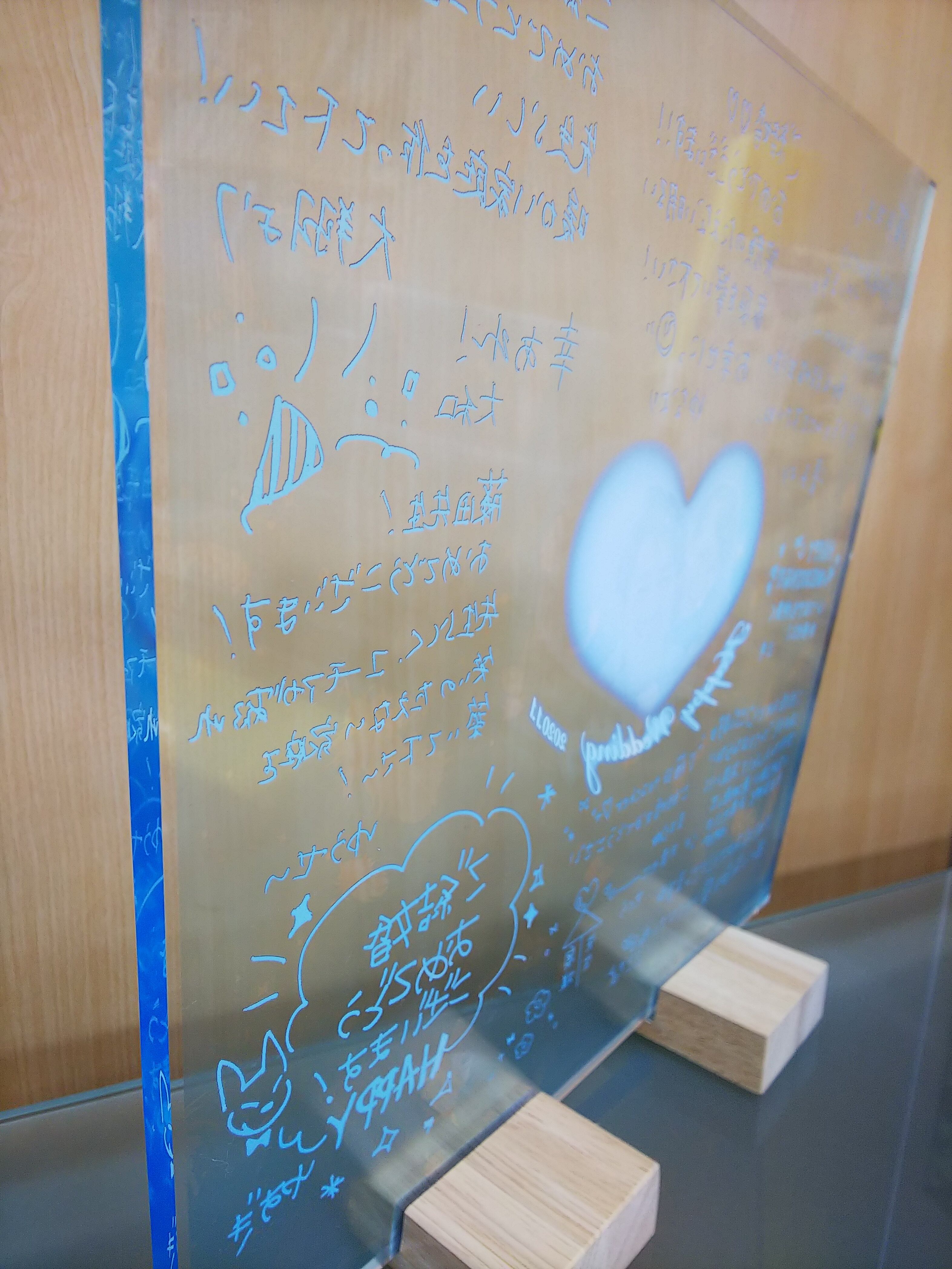 アクリルプレートの透明を生かしたデザイン、両面から印刷できます。