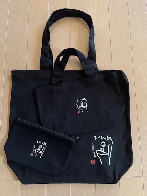 黒トート、ミニトート、マチ付ポーチ3点セットです。なんのご利益もありません笑